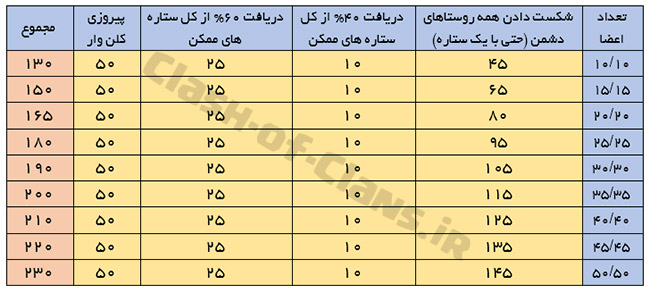 با دریافت درصدی از کل ستاره ها در کلن وارها مقدار بیشتری تجربه دریافت می کنبد.