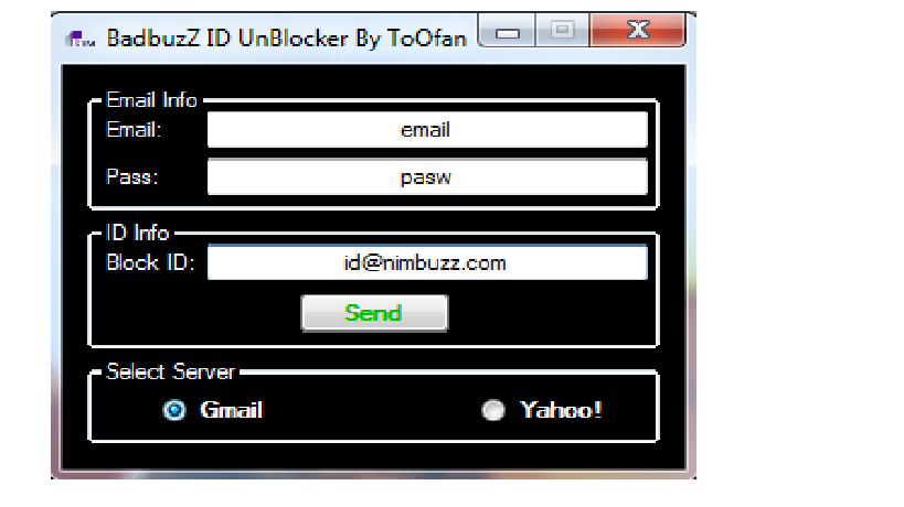 قسمت آخر که ایدیتون رو با سرور وارد میکنید : id@nimbuzz.com
