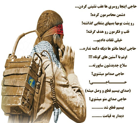 حاجی اینجا روسری ها عقب نشینی کردن، دشمن محاصرمون كرده رو پشت بومها بمبهای بشقابی گذاشتن