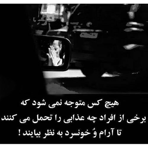دروغ بگو تا باورت کنند آب زیر کاه باش تا بهت اعتماد کنند بی غیرت باش تا آزادی حس کنند خیانت هایشان را نادیده بگیر تا آرام باشند کذب بگو تا عاشقت شوند هرچه نداری بگو دارم هرچه داری بگو بهترینش را دارم اگه ساده ای ، اگه راستگویی ، اگه باوفایی ، اگه با غیرتی اگه یکرنگی بدان که همیشه تنهایی رفیق ♥ * ♥ * ♥ * ♥ * ♥ * ♥ آنگاه که غرور کسی را له می کنی آنگاه که کاخ آرزوهای کسی را ویران می کنی آنگاه که شمع امید کسی را خاموش می کنی آنگاه که بنده ای را نادیده می انگاری آنگاه که حتی گوشت را می بندی تا صدای خرد شدن غرورش را نشنوی آنگاه که خدا را می بینی و بنده خدا را نادیده می گیری می خواهم بدانم دستانت را بسوی کدام آسمان دراز می کنی تا برای خوشبختی خودت دعا کنی؟ ♥ * ♥ * ♥ * ♥ * ♥ * ♥ بچه های فقیر…فقط در زنگ انشا تعطیلات را به کنار دریا می روند ♥ * ♥ * ♥ * ♥ * ♥ * ♥ دیگران را ببخشید بی عقلی ، تهمت ها،خیانت و بی ادبی نشانه عدم بلوغ روحی انسان هاست انسان های نارس این موارد را زیاد دارند شما انسانی رسیده باشید با سبکبالی و بدون اینکه قضاوت یا سرزنش کنید و بدون اینکه از این حرفها ناراحت شوید از کنار این ها رد شوید اگر هوای دلتان ابری شد و چشم هایتان باریدند بگذارید این اشک ها باران رحمت و بخشش باشند برای انها که نمی دانند و زمین دلشان خشک شده است اینجاست که دل بخشنده شما چشمه جوشانی می شود که به منبع عظیم لطف خدا متصل شده است ♥ * ♥ * ♥ * ♥ * ♥ * ♥ آغوش پدرم می گفت که گرمای خورشید افسانه است