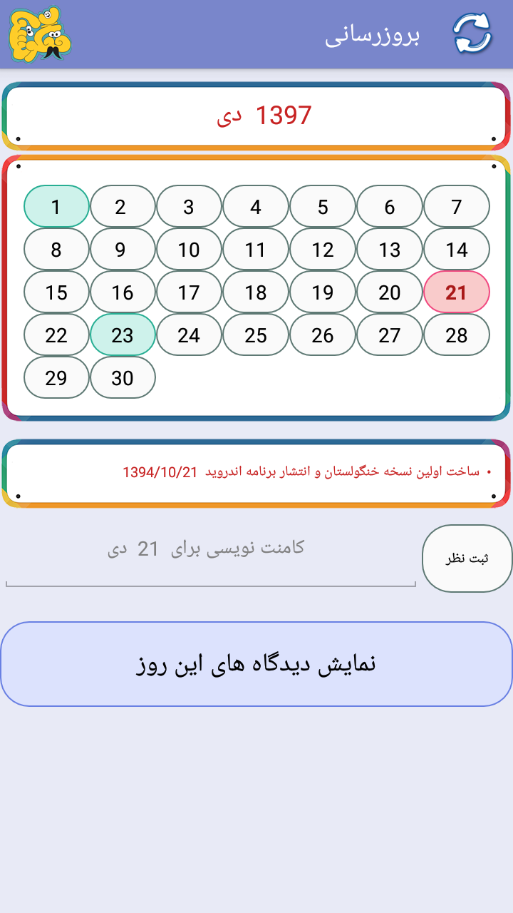 بخش دیگه ایی که اضاف کردیم بخش تقویم شخصیه خنگولستانه که همراه با اعلانه