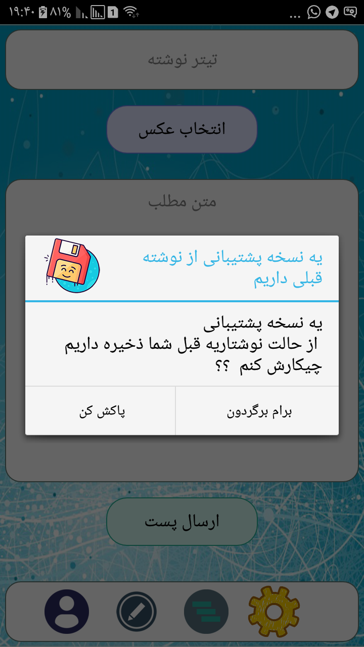 سیستم بکاب برای بخش نویسندگی طراحی شد که بتونه اگه وسط کار متنتون پرید براتون برش گردونه